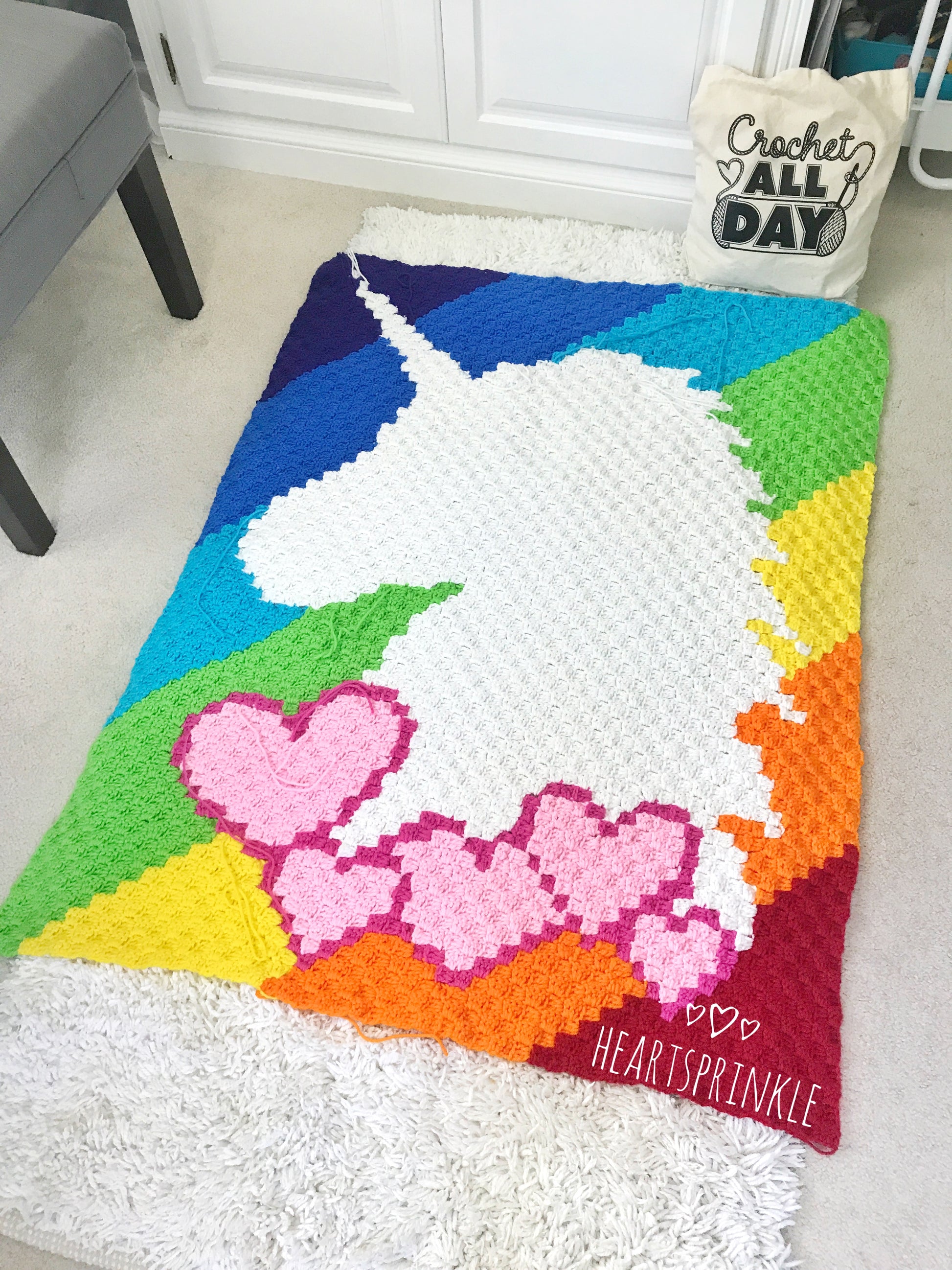 Check out our YouTube channel (Heartsprinkle) for TIPS and TRICKS on the ORIGINAL TODDLER size Unicorn C2C CAL Blanket.
