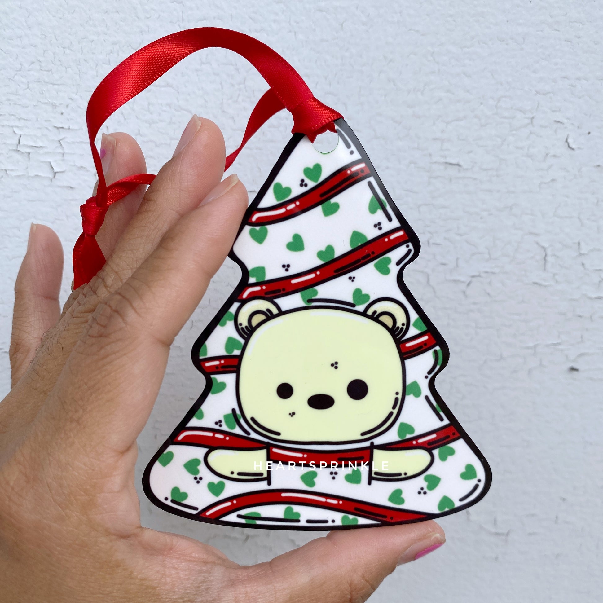 This is a sublimation design on an aluminum tree shaped ornament (Approximately 3.38x3.95 inches).